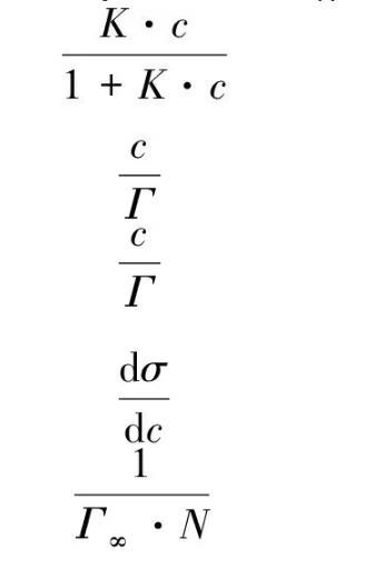 在一定溫度下,吸附量Γ與溶液濃度c的關系可由Langmuir單分子層等溫吸附式表示[7]。