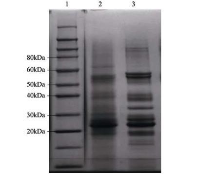 SDS-PAGE分析在NuPAGE 4%~12%Bis-Tris Mini Gel預制膠(Invitrogen,USA)上進行。在樣品中加入NuPAGE LDS sample Buffer和NuPAGE Reducing Agent(Invitrogen),70℃加熱10 min,短暫離心后上樣,每孔道上樣20μL,200 V恒電壓電泳。凝膠用考馬斯亮藍R-250染色。