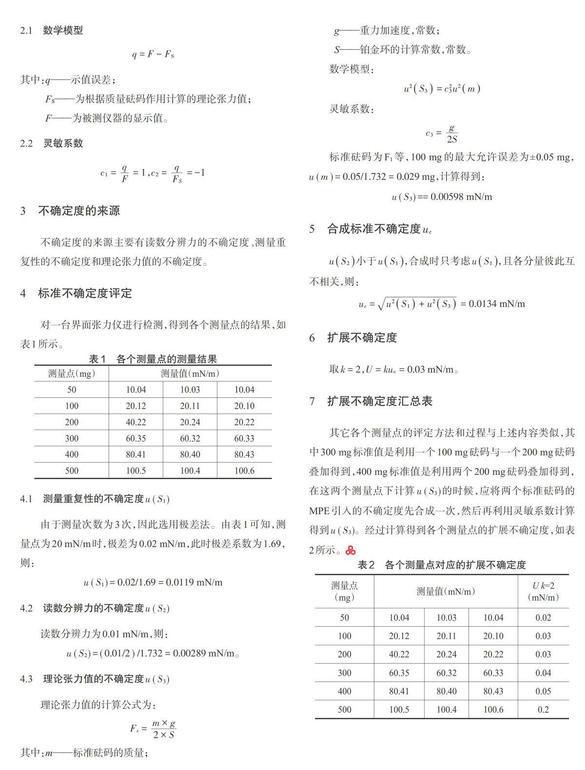不確定度的來源主要有讀數分辨力的不確定度、測量重復性的不確定度和理論張力值的不確定度。