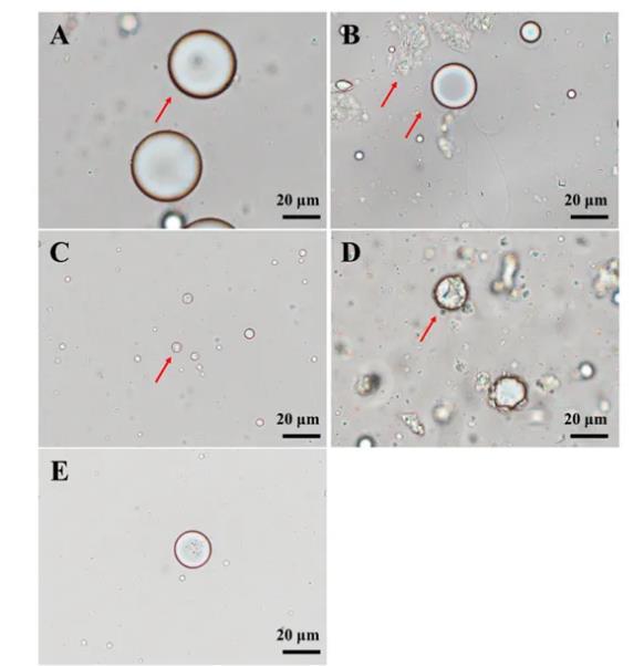 通過顯微鏡觀察發現未添加橘皮素(TAN)和β-環糊精(β-CD)的乳液液滴粒徑較大,且界面處未產生液晶。脂肪酶存在下,脂質消化過程中產生層狀液晶。當該液晶與脂肪酶相互作用時會經歷擠壓機制,導致液晶外殼破裂,液滴中未水解的油被排出。分別含有TAN、β-CD和TAN/β-CD的乳液均處于第一產物層狀液晶相的形成階段,在相同的消化時間內消化行為相似。結果表明,TAN和β-CD都具有阻礙液晶相形成的能力,且TAN比β-CD的抑制能力更強。且TAN和β-CD的共存導致液滴表面液晶相的形成顯著減少。
