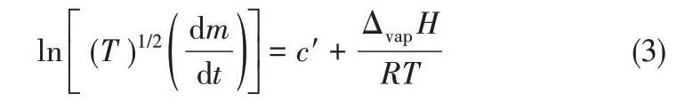 將ln[(T)1/2(dm/dt)]對(duì)1/T作圖,通過(guò)直線(xiàn)的斜率求出ILs的汽化焓ΔvapH。