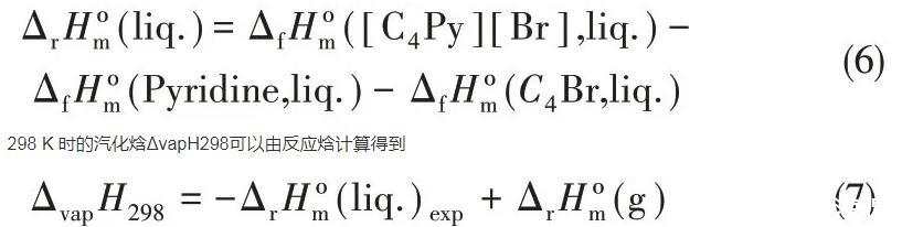 2013年,Verevkin等[65]用差示掃描量熱法測(cè)定了吡啶和吡咯烷基ILs合成的反應(yīng)焓和ILs的汽化焓。差示掃描量熱法(DSC法)廣泛用于化學(xué)反應(yīng)的動(dòng)力學(xué)和熱力學(xué)研究,他們?cè)谥暗墓ぷ髦袌?bào)道了差示掃描量熱法可以作為測(cè)量ILs熱力學(xué)性質(zhì)的合適的實(shí)驗(yàn)工具,能夠間接得到汽化焓[66-67]。