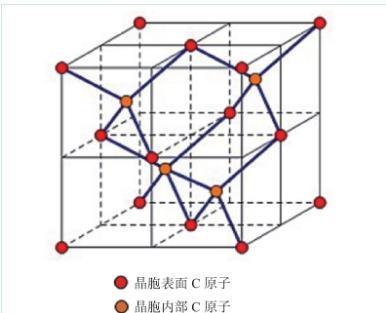 金剛石是由碳原子構成的復式晶格結構,如圖12所示。金剛石這種特殊結構決定其具有獨特的光學性能。金剛石透光范圍寬,具備紫外~可見~遠紅外波段的穿透性,從紫外(0.22μm)到遠紅外(40——1000μm),除4μm——6μm位置上存在微小本征吸收峰(吸收系數為12.3 cm?1)之外,不存在其他吸收峰。