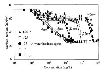 圖 7 水硬度對(duì)表面張力的影響 肥皂曲線。