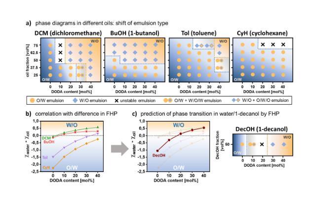 圖5.Flory?Huggins參數(shù)允許預(yù)測不同油/水乳液體系的相反轉(zhuǎn)