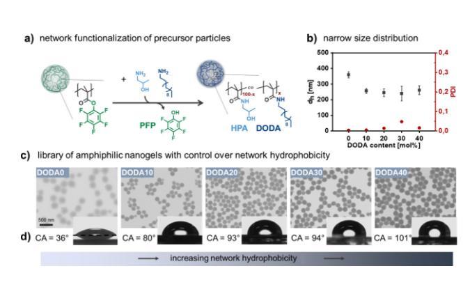 圖1.具有不同網(wǎng)絡(luò)疏水性但類似膠體性質(zhì)的兩親性納米凝膠庫