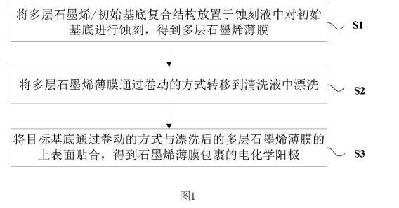 本實施例提供了一種基于石墨烯薄膜包裹的電化學陽極大規模制備方法,如圖1所示,包括以下步驟:
