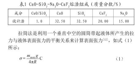 拉筒法和靜滴法測(cè)定連鑄結(jié)晶器保護(hù)渣表面張力(一)
