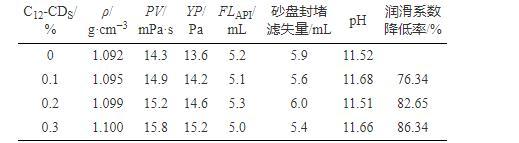 4.C12-CDS與現(xiàn)場(chǎng)用無(wú)固相硅酸鹽鉆井液具有良好的配伍性能,可提高其潤(rùn)滑性能。