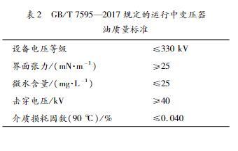 通過觀察SSAENN預測模型測試集各樣本的相對預測誤差,有5組樣本的預測誤差相對較大,超過15%,分別為17.35%、17.50%、15.91%、1602%和19.06%.為分析SSAENN預測模型中誤差異常高的5組樣本,對油樣進行其他油務常規實驗指標的檢測,分別為微水含量、擊穿電壓、介質損耗因數。表2為GB/T7595—2017對運行中變壓器油的質量要求。表3為預測誤差較大的油樣參數。由表2和表3可知,雖然5組變壓器油樣的界面張力和介質損耗因數滿足國標要求,但微水含量和擊穿電壓均不滿足國標要求,其中5組油樣的微水含量分別超標9.42、16.11、1283、10.94、42.83mg/L,擊穿電壓離達標分別還差17.4、27.5、21.2、13.3、18.6kV,說明預測相