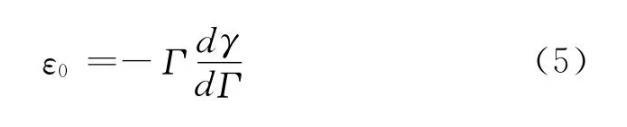 擴(kuò)張彈性全頻率譜上高頻平臺(tái)值稱為極限擴(kuò)張彈性(ε0),其物理化學(xué)意義是當(dāng)頻率足夠大、所有界面弛豫過(guò)程均可忽略時(shí)的擴(kuò)張彈性,如式(5)所示。