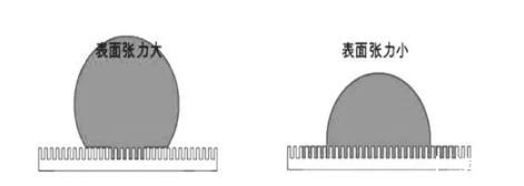 凡作用于液體表面,使液體表面積縮小的力,稱(chēng)為液體表面張力。表面張力越低,材料濕潤(rùn)表面的能力就越強(qiáng)。當(dāng)表面張力很高時(shí),液體會(huì)聚集在一起形成液滴。一般來(lái)說(shuō),溶劑型清洗劑比水基型清洗劑的表面張力更低,能夠滲透到密閉的區(qū)域,去清除污染物見(jiàn)圖1。
