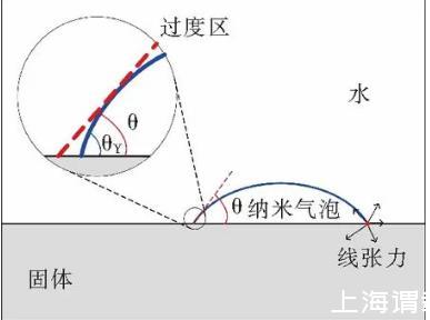 根據改進的拉普拉斯-楊方程,納米氣泡的接觸角可以表示為