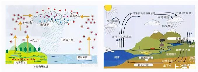 水(蒸發(fā))→水蒸氣(上升)→小水滴(凝固)→大水滴·云(溶合)→雨(下降)