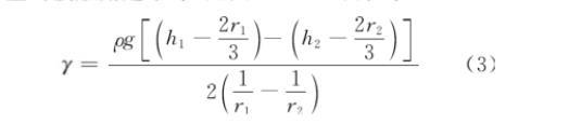 在式(3)的基礎上,忽略接觸角和修正高度,得到差分毛細管法測試瀝青表面張力的現行公式: