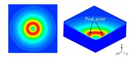 電弧剪切應力的存在是由于電弧等離子體中既有動能又有動量。當電弧等離子體從熔池中心撞擊熔池時,熔池表面會受到向外的剪切應力。類似于表面張力,熔池表面的剪切應力促使液態金屬向外流動。它通常在靜止焊接或低速焊接過程中呈軸對稱分布,如圖3所示,從電弧中心到邊界,電弧剪切應力先急劇增加后減小。在高焊接速度下,電弧沿焊接方向變形,產生非軸對稱分布的電弧剪切應力,此時可以假設電弧剪切應力分布在一個雙橢圓區域。