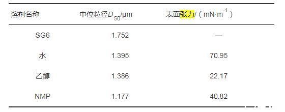 不同表面張力的球磨溶劑對微晶石墨粒徑的影響