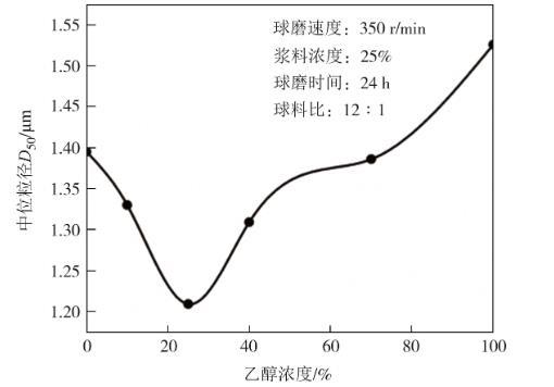 圖2采用不同濃度的乙醇溶液做球磨溶劑時微晶石墨的中位粒徑