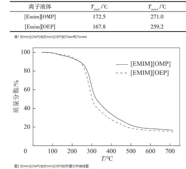 表1[Emim][OMP]與[Emim][OEP]的Tstart和Tonset