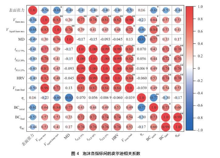 圖4泡沫各指標間的皮爾遜相關系數(shù)