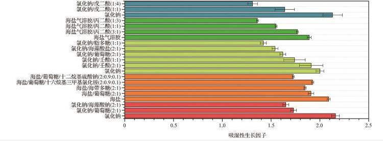 在實(shí)驗(yàn)室中通過吸濕串聯(lián)差分電遷移率分析儀測(cè)量給定RH下的粒徑與干粒徑的比值,以通過吸濕性生長(zhǎng)因子來量化吸濕性。最近許多研究關(guān)注到表面活性物質(zhì)對(duì)顆粒吸濕性的影響。圖4總結(jié)了當(dāng)前一些研究中量化的表面活性物質(zhì)對(duì)SSA模擬物吸濕性的影響。
