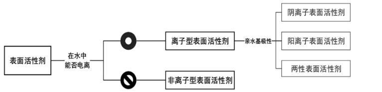 表面活性劑的分類如圖1所示。礦井下的煤塵一般是帶負(fù)電荷,若選用陽(yáng)離子表面活性劑配制溶液,那么帶負(fù)電荷的煤塵在與之接觸時(shí),會(huì)與帶正電荷的親水性基團(tuán)結(jié)合,造成疏水基分布在溶液表面現(xiàn)象,促使煤塵不容易被溶液潤(rùn)濕,故不考慮陽(yáng)離子活性添加劑。結(jié)合表面活性劑的理化性質(zhì),本文選取了六種常用的表面活性劑來(lái)進(jìn)行實(shí)驗(yàn),材料均采購(gòu)于萬(wàn)化(廣州)供應(yīng)鏈服務(wù)有限公司。