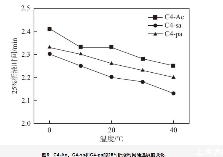 圖6 C4-Ac、C4-sa和C4-pa的25%析液時間隨溫度的變化