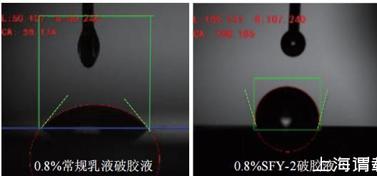 圖3 壓裂液破膠液處理煤巖后接觸角測試