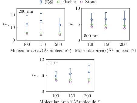 2)在LE相表面結構均勻的膜上,顆粒阻力系數(shù)等于水動力學阻力系數(shù)與熱力學毛細波界面擾動表面張力阻力系數(shù)之和。其中,界面擾動表面張力需體現(xiàn)膜的黏彈性及微納尺度,因此加入了黏彈性項以及熱力學毛細波波數(shù)項。利用熱力學毛細波波長擬合實驗測量值發(fā)現(xiàn),約等于膜內(nèi)主要成分DPPC磷脂分子的平均間距,符合熱力學界面擾動的理論描述。