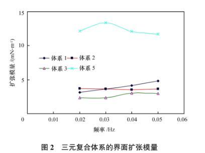 體系1、體系2、體系3可以構成界面張力不同而界面擴張黏彈性相同的對比實驗;體系4、體系5、體系6可以構成界面張力相同而界面擴張黏彈性不同的對比實驗。