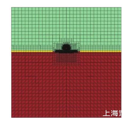 5)限制2)—4)條規(guī)則最小加密層數(shù)的加密區(qū)間為:Y向液滴中心上方2R至水面下方4R;x向?qū)ΨQ軸左右4R內(nèi)的矩形內(nèi),以提高計算效率。