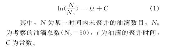 其中,N為某一時間內未聚并的油滴數目,N0為考察的油滴總數(N0=30),t為油滴的聚并時間,C為常數。