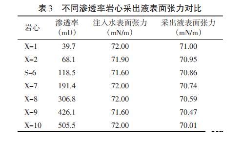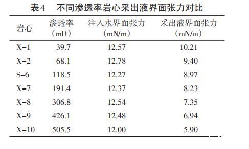 表4不同滲透率巖心采出液界面張力對比