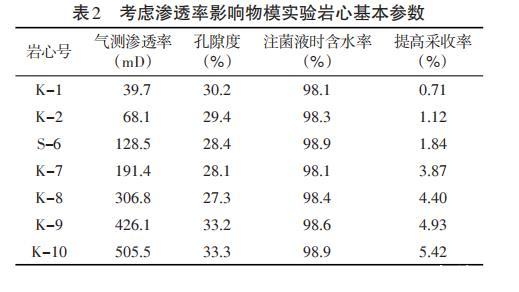 2.3.3評價滲透率對微生物驅(qū)油的影響