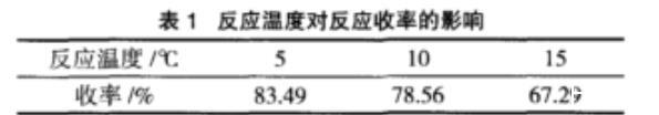 表1反應溫度對反應收率的影響