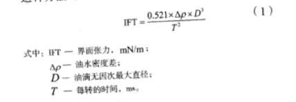 采用芬蘭Kibron dIFT雙通道動態界面張力儀進行界面張力測定。此張力儀的原理是:液滴通過旋轉處于一定的離心場中,這時兩種液體之間的界面張力及旋轉的速度就決定了液滴的形狀,液滴的平衡形狀通過調整轉速得到改變,而使液滴以一定的角速度自轉,這時通過離心力、重力以及界面張力的三種力量的共同作用下,在高密度的液體中,低密度的液滴能夠形成圓柱形或長橢球形液滴。這種方法可以測定出10-6mN/m的超低界面張力。