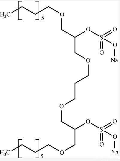 本文以提高起泡量和泡沫半衰期、降低使用濃度為目標,創新設計了一種新型分子結構的雙子型起泡劑ULT-1。雙子表面活性劑的臨界膠束濃度較相應的傳統表面活性劑的臨界膠束濃度低1~2個數量級,能更有效地降低水的表面張力,有利于降低使用濃度、提高起泡量。用短聯結基團連接的雙子表面活性劑,在相當低的濃度時其水溶液就具有較高的黏度,有利于提高泡沫半衰期,增強泡沫穩定性。親水基SO42?親水性強,位于雙子表面活性劑中間,降低表面張力的效率高,有利于提高起泡量。親水基團顯負電性,其在氣液界面吸附后,氣泡之間可產生靜電斥力,降低了氣泡的聚并速度,有利于提高泡沫穩定性。2個親水基團將水緊緊吸附在液膜內,提高了起泡劑的鎖液能力,降低了液膜的排液速度,大大提高了泡沫穩定性。