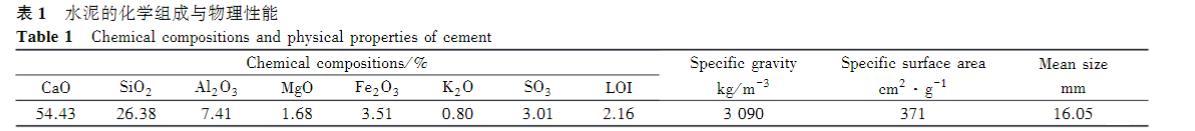 表1水泥的化學組成與物理性能
