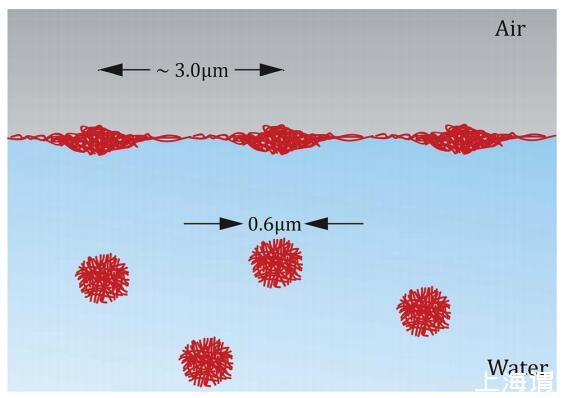 PNIPAM微凝膠由于其聚合物性質(zhì),易于吸附到空氣-水界面。我們已經(jīng)在實(shí)驗(yàn)上為吸附在空氣-水界面上的這種軟微凝膠顆粒建立了二維狀態(tài)方程。壓力-面積等溫線給出了一個可測量的壓力,即使在平均粒間距離遠(yuǎn)大于其流體動力學(xué)直徑的情況下。這證實(shí)了粒子在界面處基本變形的事實(shí)。使用一個簡單的標(biāo)度參數(shù),我們表明,在非常低的載荷下,粒子的變形與粒子間距離的順序相同,從而產(chǎn)生非常小但可測量的壓力。低負(fù)荷下的壓力間接探測顆粒的內(nèi)部彈性,這與內(nèi)部交聯(lián)密度有關(guān)。EOS的實(shí)驗(yàn)觀測符合Groot和Stoyanov提出的標(biāo)度關(guān)系。由此標(biāo)度關(guān)系產(chǎn)生的長度標(biāo)度deff=1.25 nm可視為交聯(lián)之間的有效距離。在非常高的載荷下,與標(biāo)度關(guān)系的偏差可歸因于界面層的屈曲或由于壓縮導(dǎo)致的周邊聚合物鏈段的部分解吸。