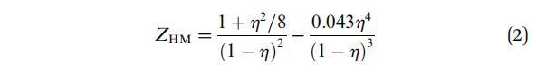 式中,η是表面堆積分?jǐn)?shù),它可以用顆粒數(shù)密度(p)和單個顆粒的體積直徑(d)表示為η=(π/4)pd2。對于我們的實(shí)驗(yàn),η介于0和0.91之間。ZHM的相應(yīng)值介于1和96之間。