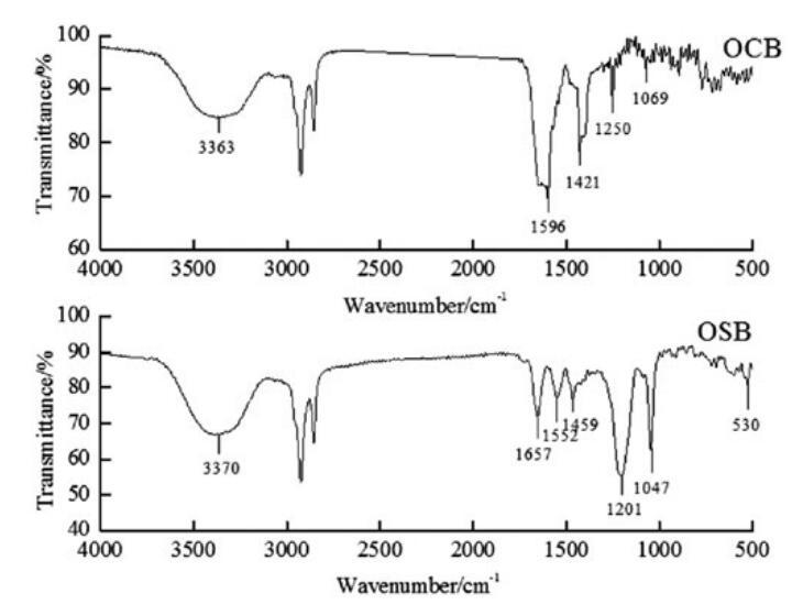 圖1。OCB和OSB的FT-IR光譜。