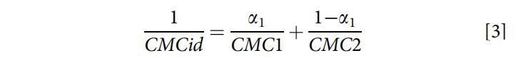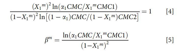從Clint方程(方程3)[25]中獲得了描述混合膠束形成理想狀態的理論理想混合CMCid: