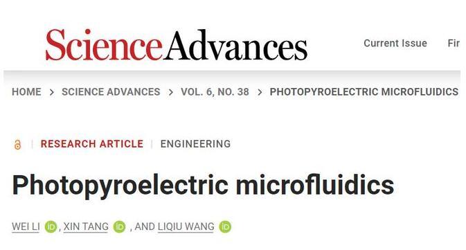 文章鏈接:W.Li,X.Tang,L.Wang,Photopyroelectric microfluidics.Sci.Adv.6,eabc1693(2020).https://www.science.org/doi/full/10.1126/sciadv.abc1693