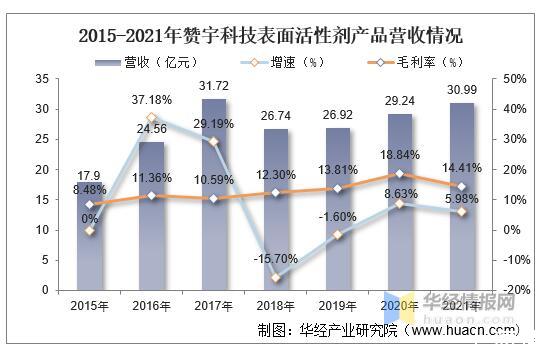 贊宇科技集團(tuán)股份有限公司是專業(yè)從事表面活性劑、油脂化學(xué)品研發(fā)制造和洗化產(chǎn)品代加工的高新技術(shù)企業(yè)。長期以來,公司憑借先進(jìn)的理念、科學(xué)的管理以及技術(shù)和人才的優(yōu)勢,堅持自主創(chuàng)新,走科技成果產(chǎn)業(yè)化的發(fā)展道路,現(xiàn)已成為國內(nèi)研究和生產(chǎn)表面活性劑的龍頭企業(yè)之一。據(jù)資料顯示,2021年公司表面活性劑產(chǎn)品營收為30.99億元,同比增長5.98%,毛利率為14.41%。