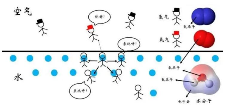 然而,這種關(guān)系的穩(wěn)定程度是與雙方分子的種類有關(guān)的。如圖4所示,對(duì)于水-空氣的界面而言,處于表面的水分子周圍的分子種類較為豐富,除了其他水分子,還有空氣中的氧氣、氮?dú)獾确肿印?