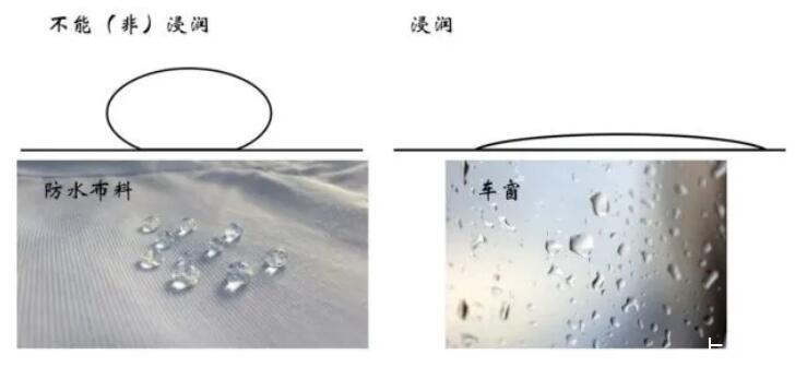 浸潤(rùn)現(xiàn)象,這個(gè)詞可能大家比較陌生,但是對(duì)應(yīng)的物理現(xiàn)象非常常見(jiàn)。比如下圖所示的防水衣服以及公交車車窗上的水滴就是非浸潤(rùn)和浸潤(rùn)代表性的場(chǎng)景。