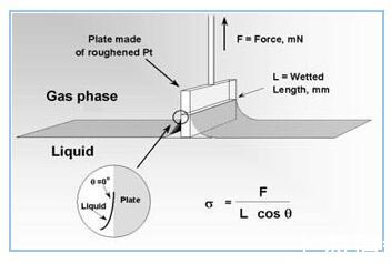 液體的表面/界面張力可直接測量。測量的方法大多基于對表面/界面施加一外力,從而引起其變化,通過測量施加的力和/或其變化的程度,就可計(jì)算出表面/界面張力的值。