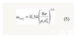 當(dāng)含表面活性劑射流離開(kāi)噴嘴后,其表面會(huì)形成不穩(wěn)定波。射流表面不穩(wěn)定波隨著射流的前進(jìn)不斷發(fā)展并最終導(dǎo)致了液體射流的破裂。從圖5中可以看出,實(shí)驗(yàn)工況下,射流表面波動(dòng)為正對(duì)稱波;從圖6中可以看出,射流破裂長(zhǎng)度隨著液體射流速度的增大而增大。因此,可以認(rèn)為在實(shí)驗(yàn)工況下,含表面活性劑射流處于Rayleigh模式。在此射流破裂模式下,射流表面最不穩(wěn)定波的增長(zhǎng)率可以表示為[18]: