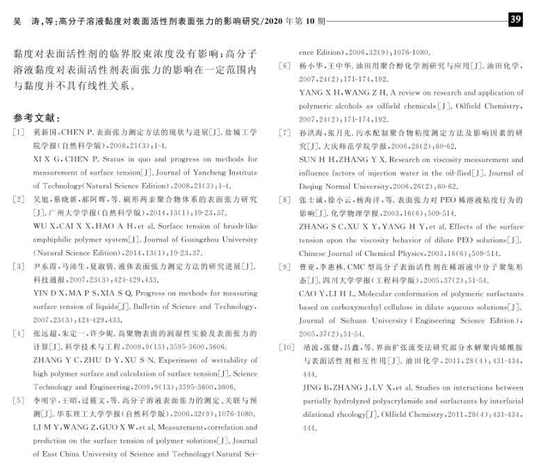 高分子溶液黏度對表面活性劑表面張力的影響研究