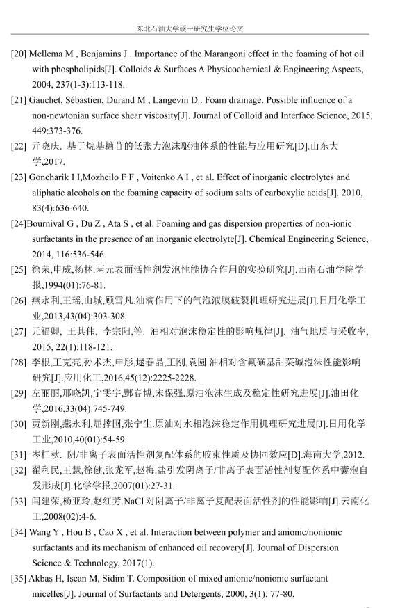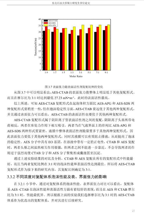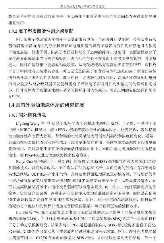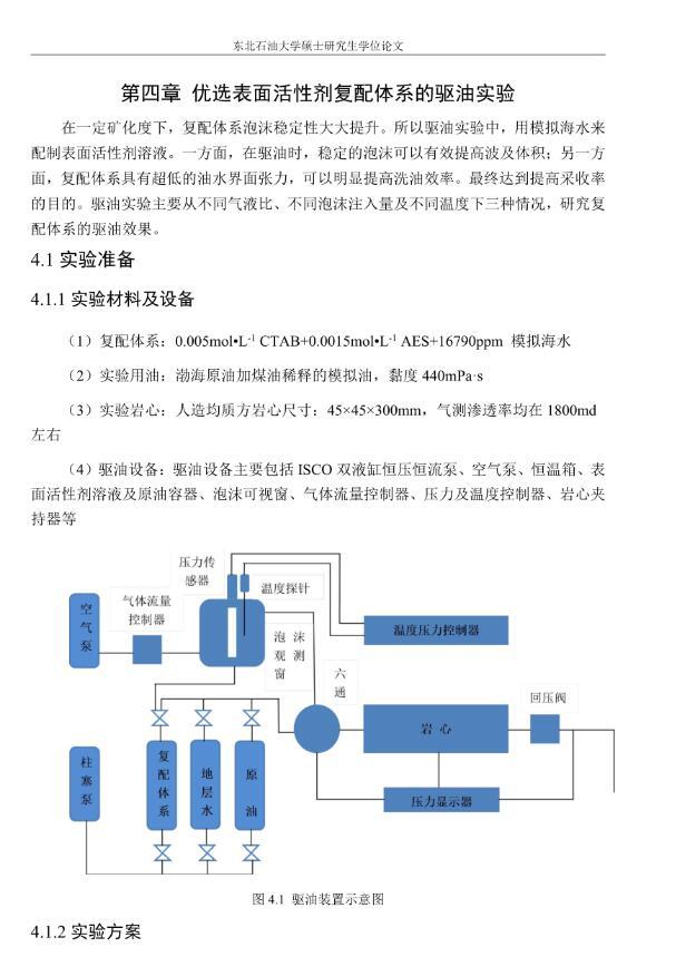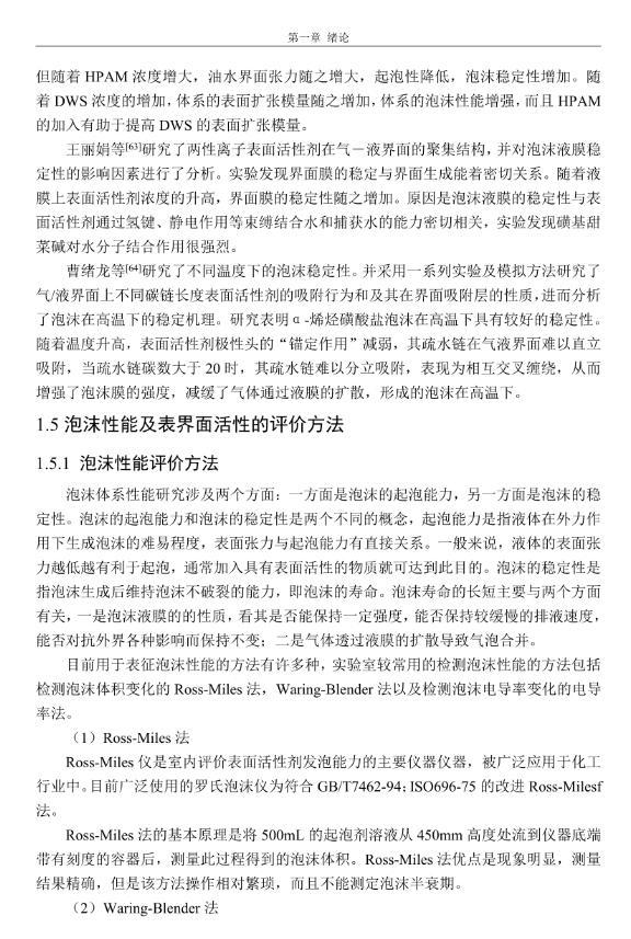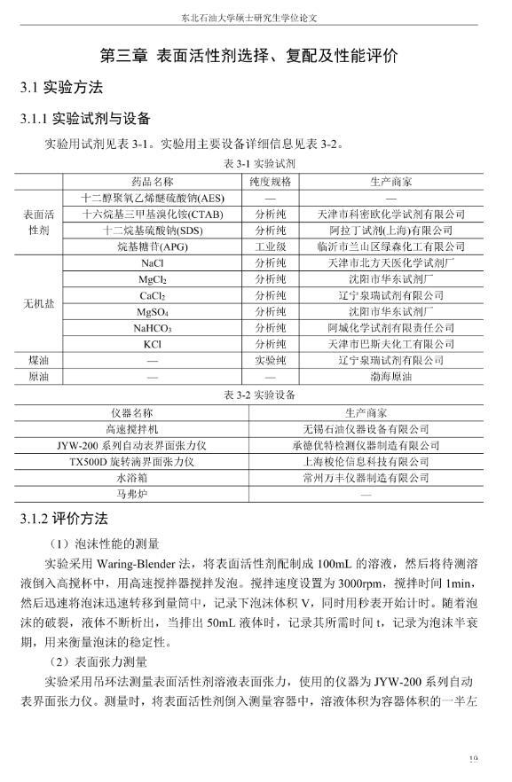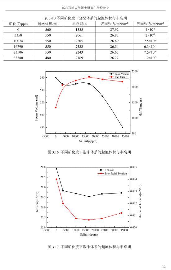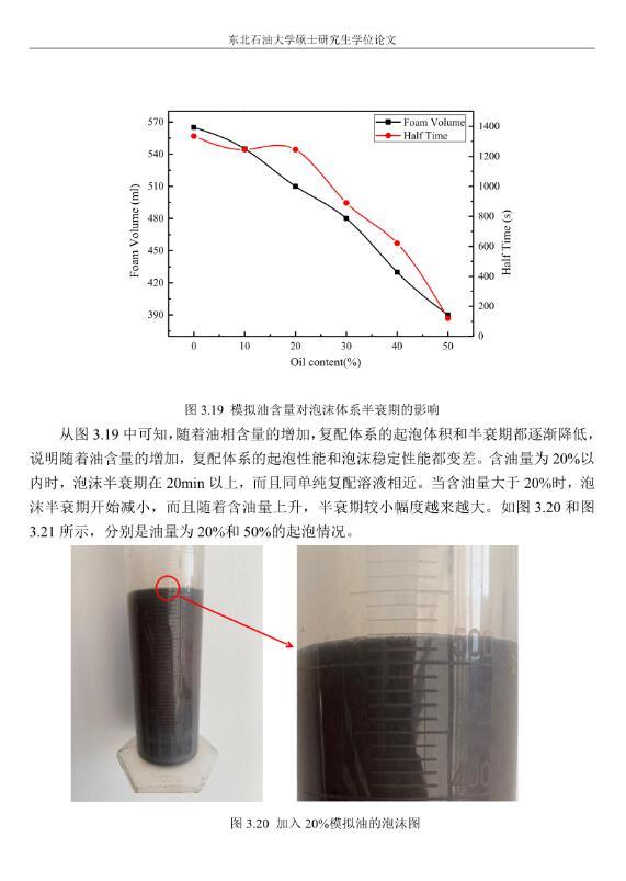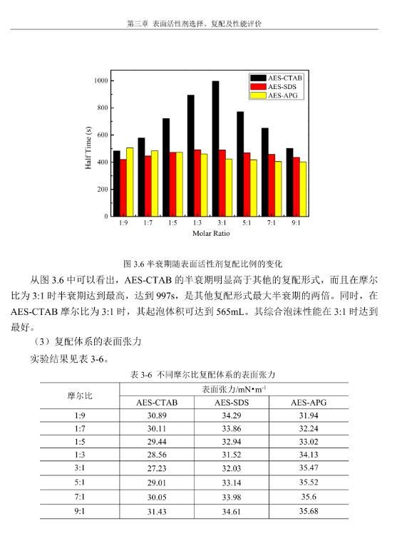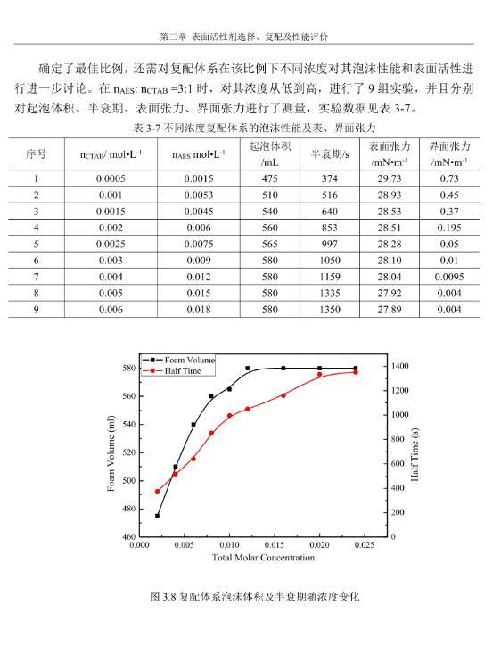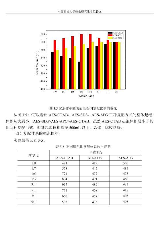 【摘要】:泡沫驅(qū)具有良好的驅(qū)油性能,在提高采收率方面?zhèn)涫荜P(guān)注。在泡沫驅(qū)油過程中,能夠明顯降低注入流體的流度,改善流度比,降低流體的相對滲透率,延緩注入流體的突破時間,封堵高滲層的大孔道,改變液流的方向,較好地實(shí)現(xiàn)封堵作用。但泡沫作為一種熱力學(xué)不穩(wěn)定流體,其穩(wěn)定性受許多因素的影響,包括遇油快速消泡、在高溫和高礦化度的情況下極易破裂等,泡沫穩(wěn)定性已成為泡沫驅(qū)油時亟待解決的問題。另外,用于泡沫驅(qū)的泡沫體系很難兼具超低界面張力和穩(wěn)定泡沫兩種性能,而且文獻(xiàn)報道對這方面的研究較少,這為本文提供了一個新的思路。實(shí)驗(yàn)室合成陰-非離子型表面活性劑十二醇聚氧乙烯醚硫酸鈉(AES)。AES同時具有陰離子和非離子兩種表面活性劑的性能,具有很好的泡沫性能和表面活性,同時與其它表面活性劑具有很好的相容性。最終確定的合成條件為:十二醇聚氧乙烯醚和氨基磺酸的摩爾比為1:2,反應(yīng)溫度為95℃,反應(yīng)時間為60min。在合成AES的基礎(chǔ)上,選擇幾種不同類型的表面活性劑進(jìn)行復(fù)配,優(yōu)選出泡沫性能和表面活性優(yōu)良的體系,進(jìn)行耐溫、耐礦化度及耐油性能的評價。實(shí)驗(yàn)采用Waring-Blender法測量泡沫的起泡體積和半衰期,采用吊環(huán)法和旋轉(zhuǎn)滴法測量復(fù)配體系的表面張力與油水界面張力。實(shí)驗(yàn)最終優(yōu)選出泡沫性能與表面活性優(yōu)良的AES-CTAB復(fù)配體系,并確定其最佳復(fù)配摩爾比為3:1,最佳總濃度為0.02mol·L-1。復(fù)配體系耐溫200℃,耐質(zhì)量分?jǐn)?shù)20%的原油,礦化度增加可以提高復(fù)配體系的泡沫穩(wěn)定性和表面活性。實(shí)驗(yàn)從氣液比、泡沫注入量和溫度三個方面對泡沫提高采收率的影響進(jìn)行研究。最佳氣液比為2:1,最佳泡沫注入量為0.6PV,泡沫采收率隨溫度的提高逐漸下降,在60-100℃范圍內(nèi)泡沫在水驅(qū)后提高采收率在30%以上。